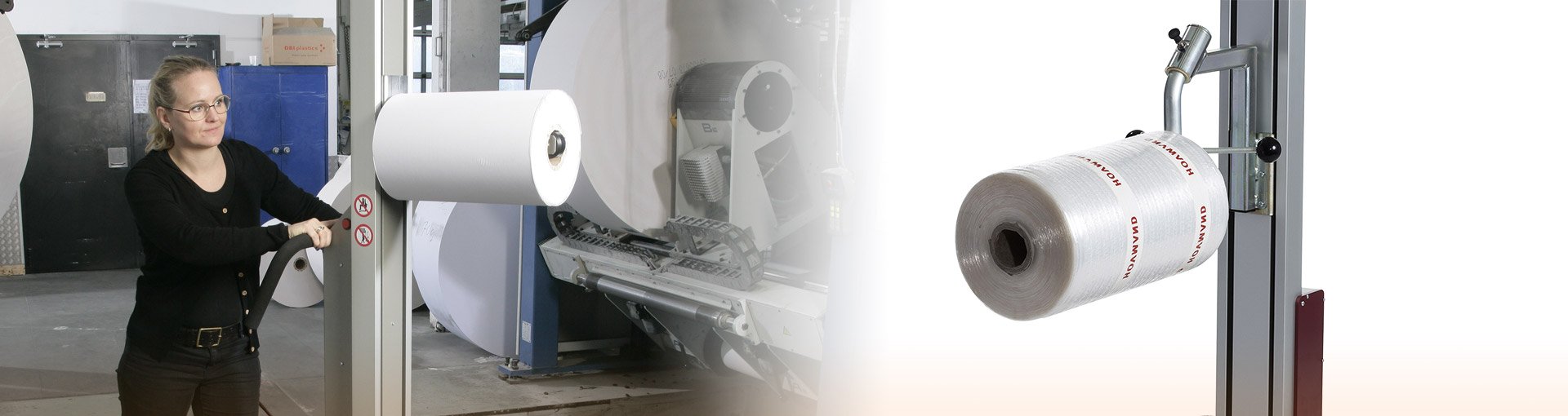 Gebruik verrijdbare tilhulpen voor rollenfolie. Voor zware rollen heb je goede oplossingen met rollen-manipulators of rollenhandlers die aan een zwenkarm of kraanbaansysteem hangen.